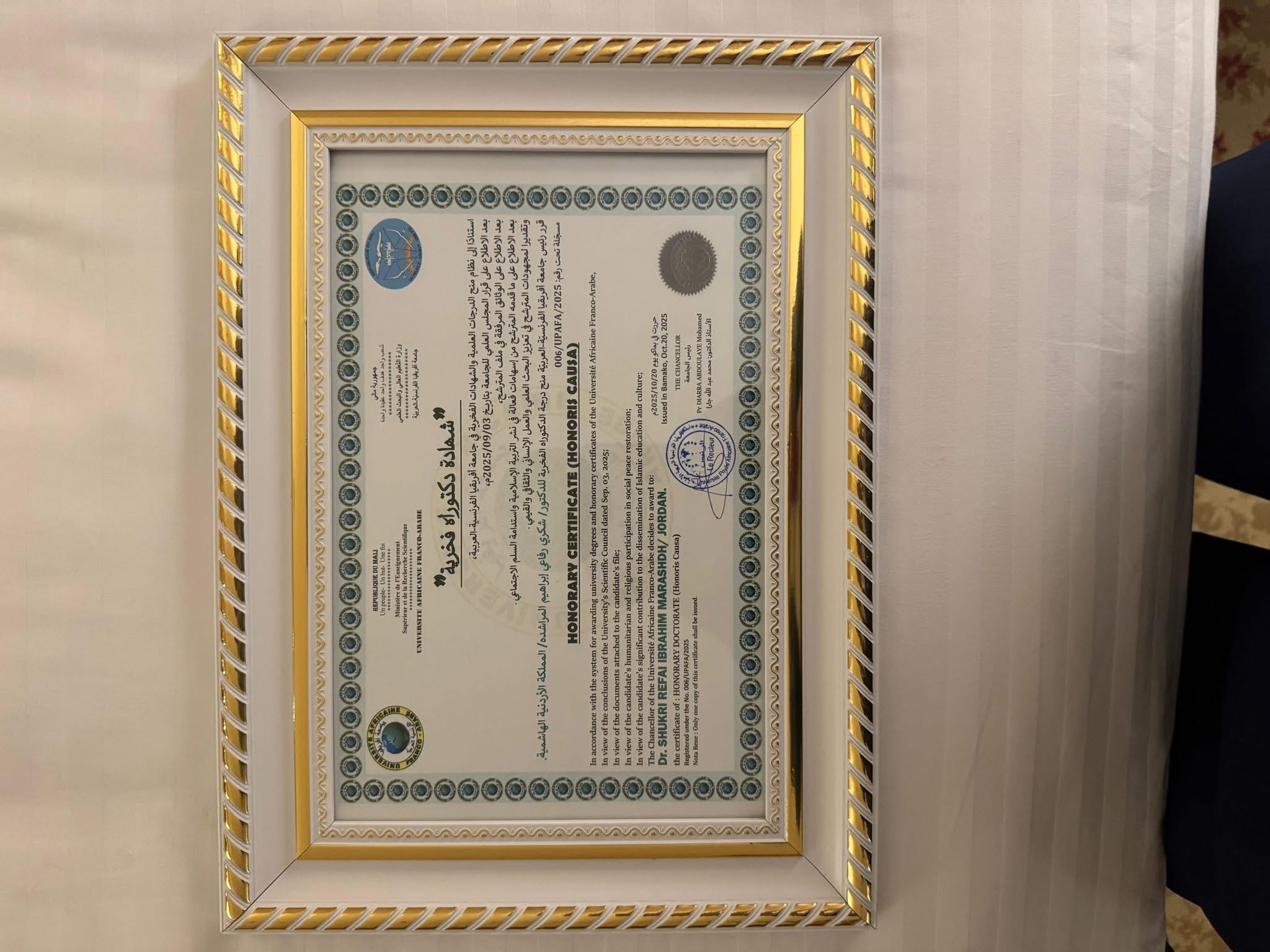 منحت إدارة جامعة أفريقيا الفرنسية العربية، المنظمة للمؤتمر الدولي “الدراسات الإسلامية والتكامل المعرفي في السياق المعاصر”، الذي انعقد في إسطنبول – تركيا خلال الفترة من 23 إلى 25 أكتوبر 2025، الدكتوراه الفخرية لرئيس هيئة المديرين بجامعة جدارا، الدكتور شكري المراشدة، تقديرًا لدوره البارز في دعم التعليم العالي والبحث العلمي، وتعزيز مكانة جامعة جدارا على الصعيدين الوطني والدولي.
