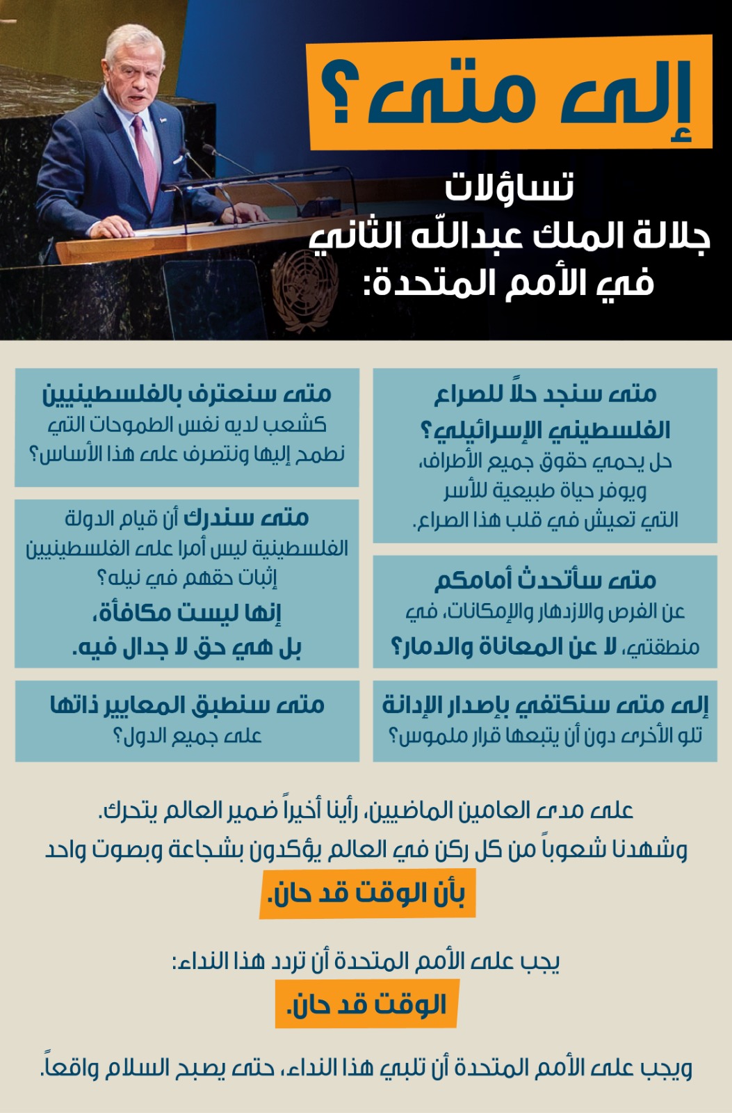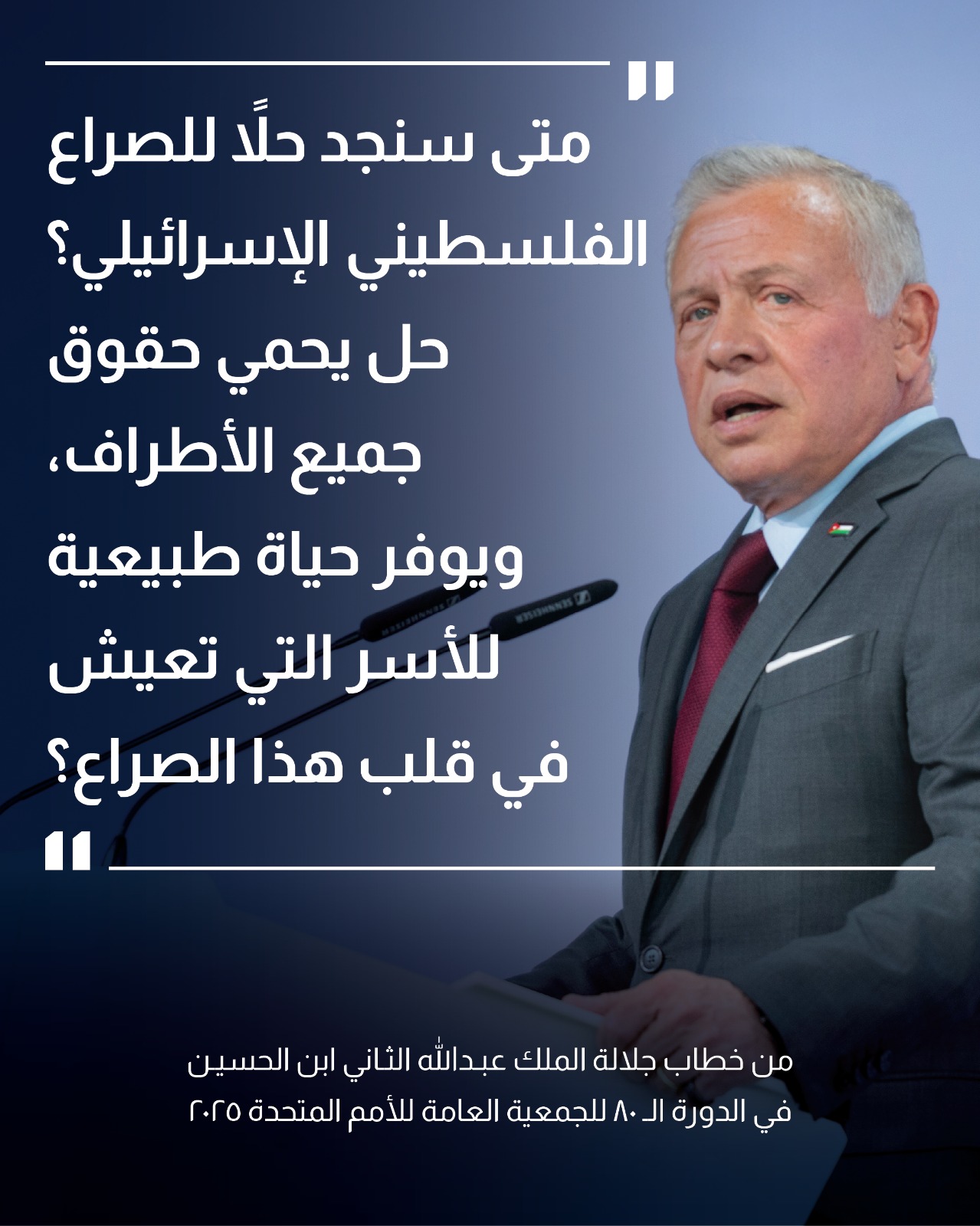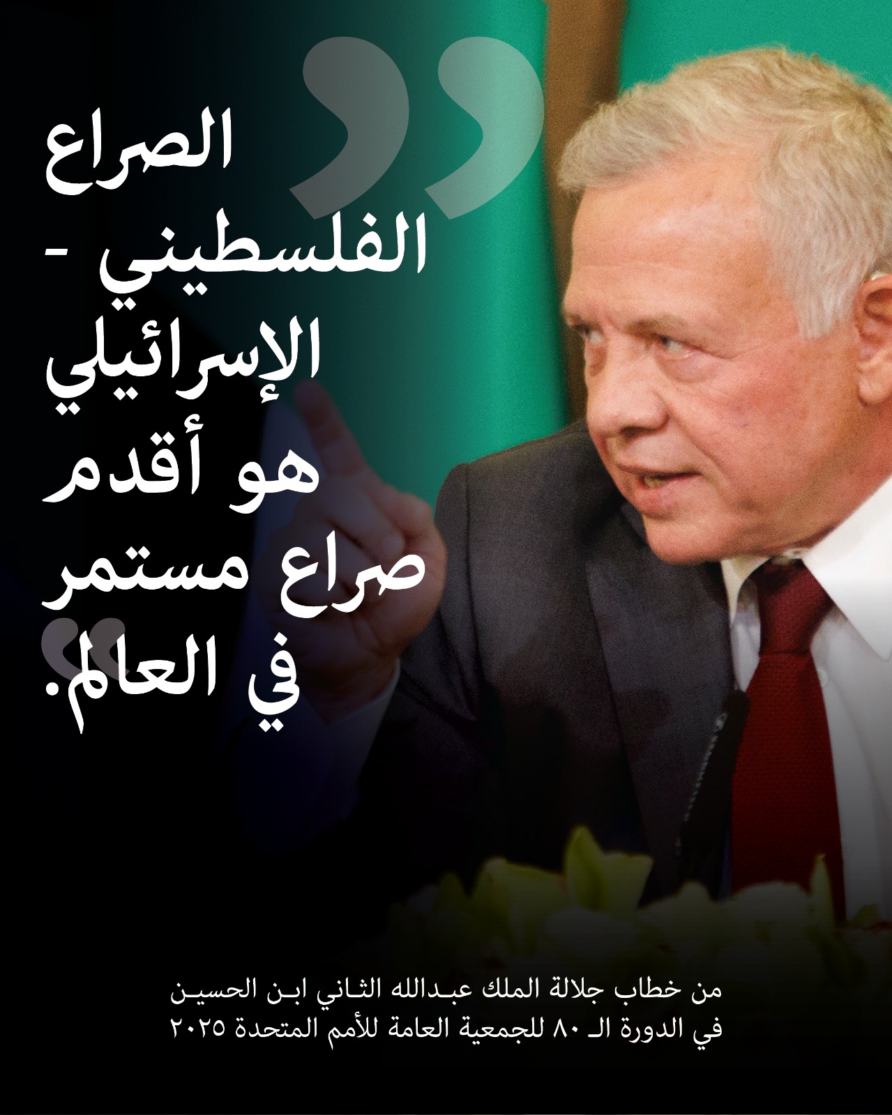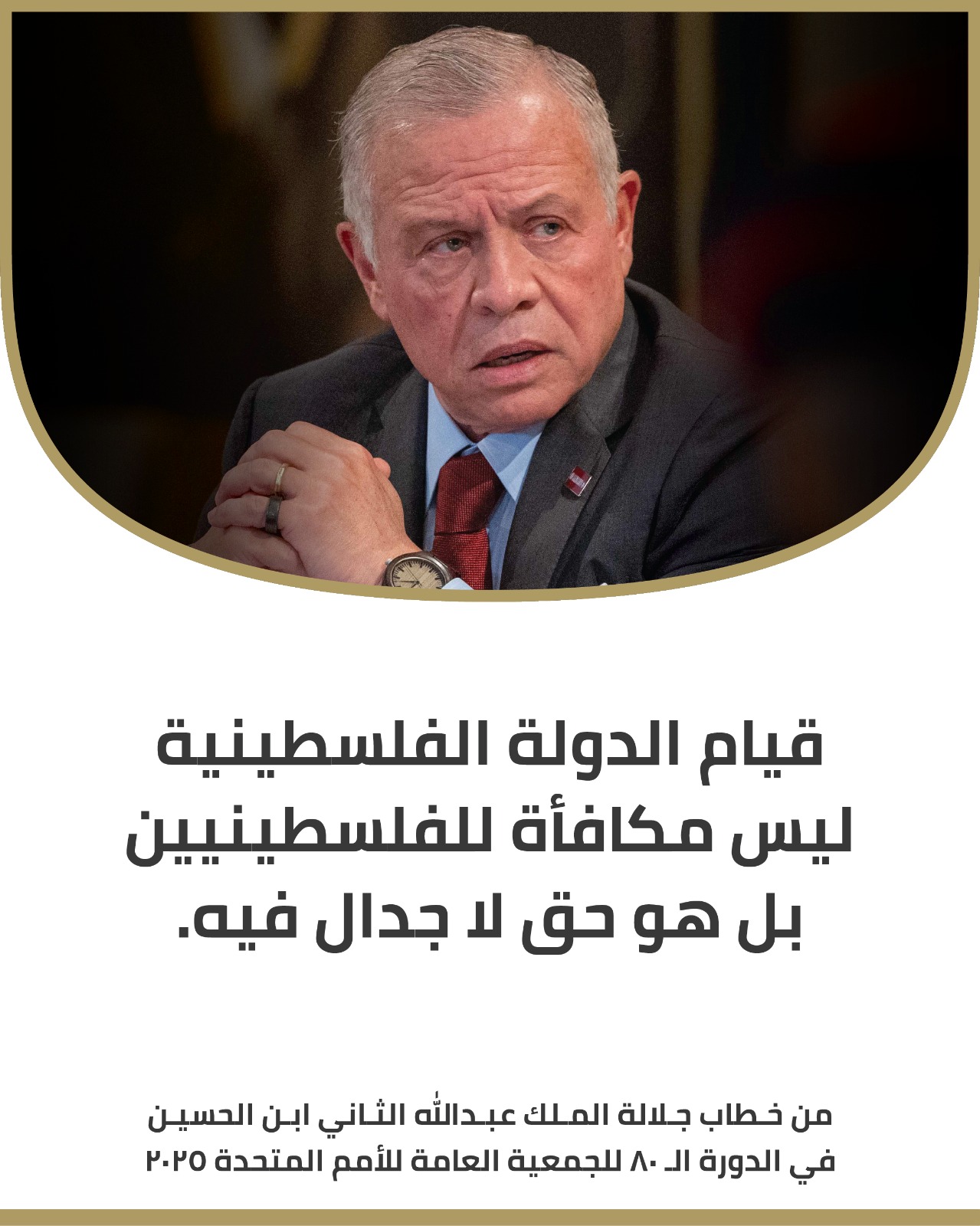 الملك من الأمم المتحدة: قيام الدولة الفلسطينية ليس مكافأة للفلسطينيين بل هو حق لا جدال فيه