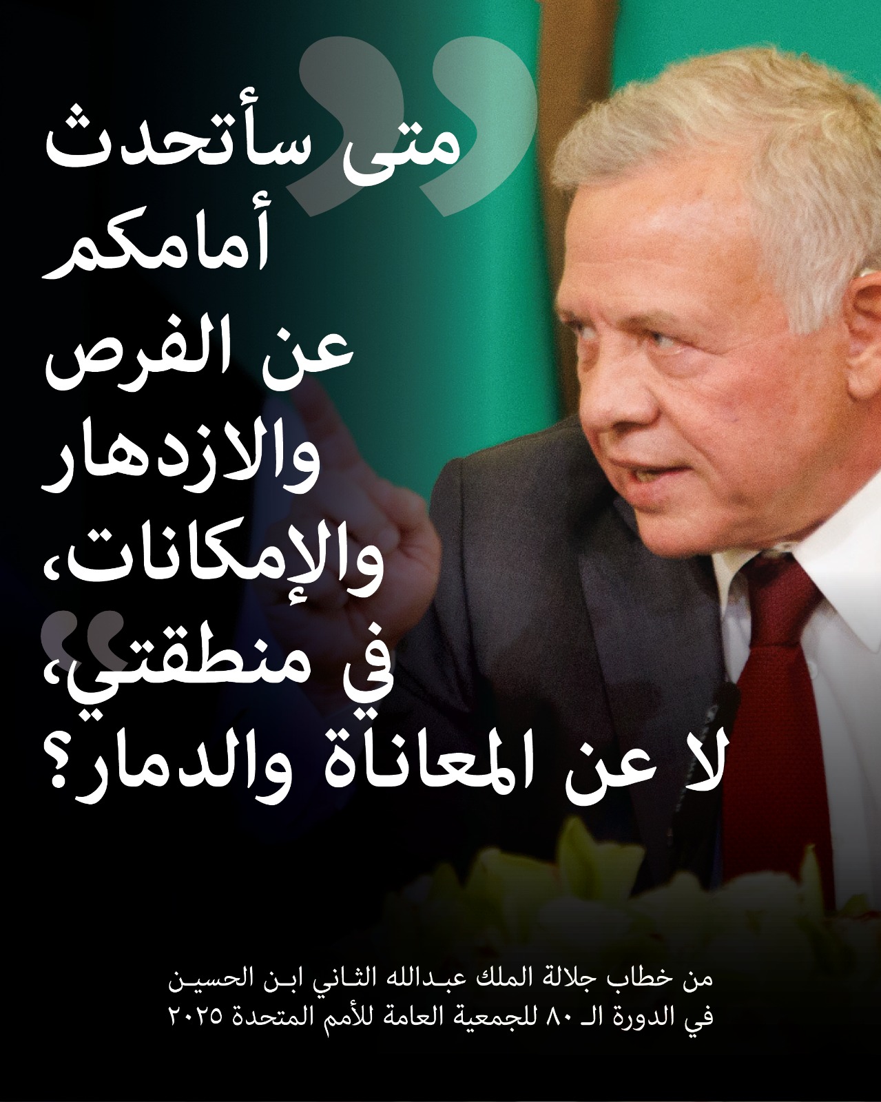 الملك مخاطبا الجمعية العامة للأمم المتحدة: متى سأتحدث أمامكم عن الفرص والازدهار والإمكانات، في منطقتي، لا عن المعاناة والدمار؟