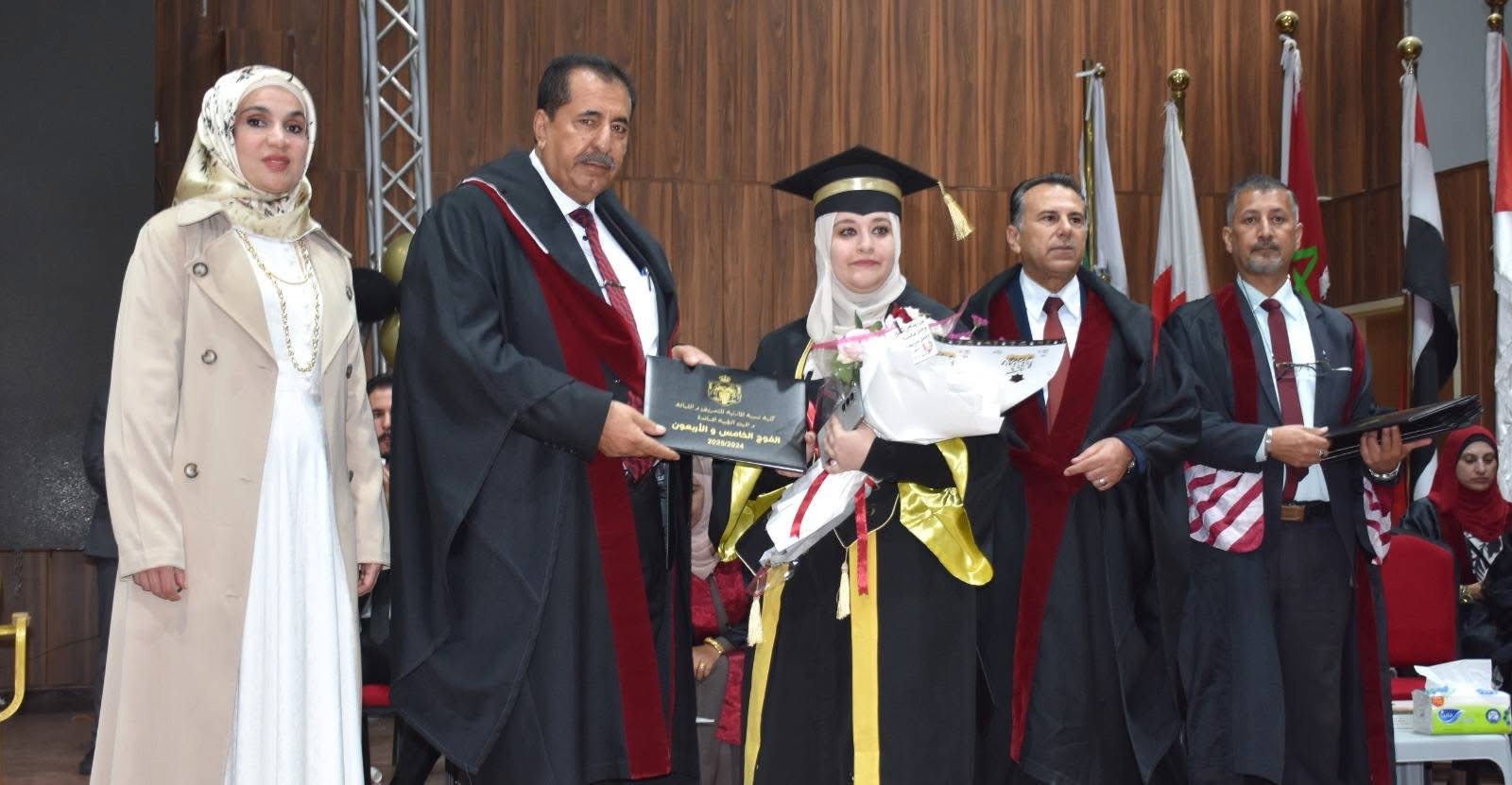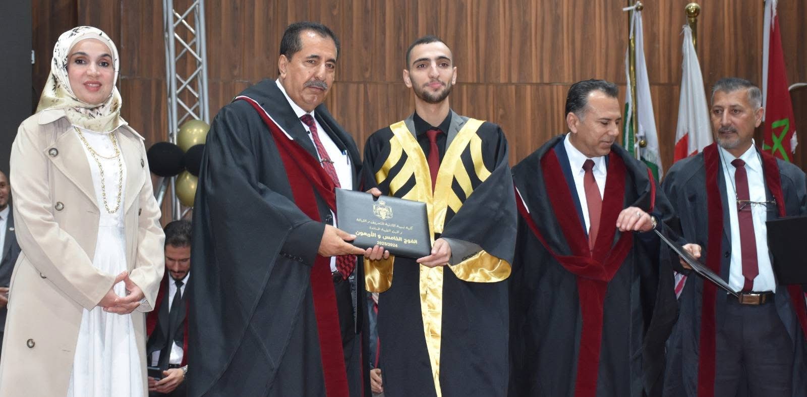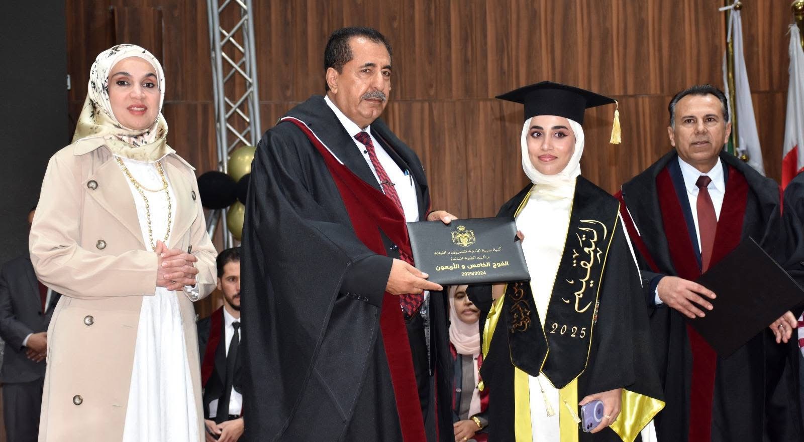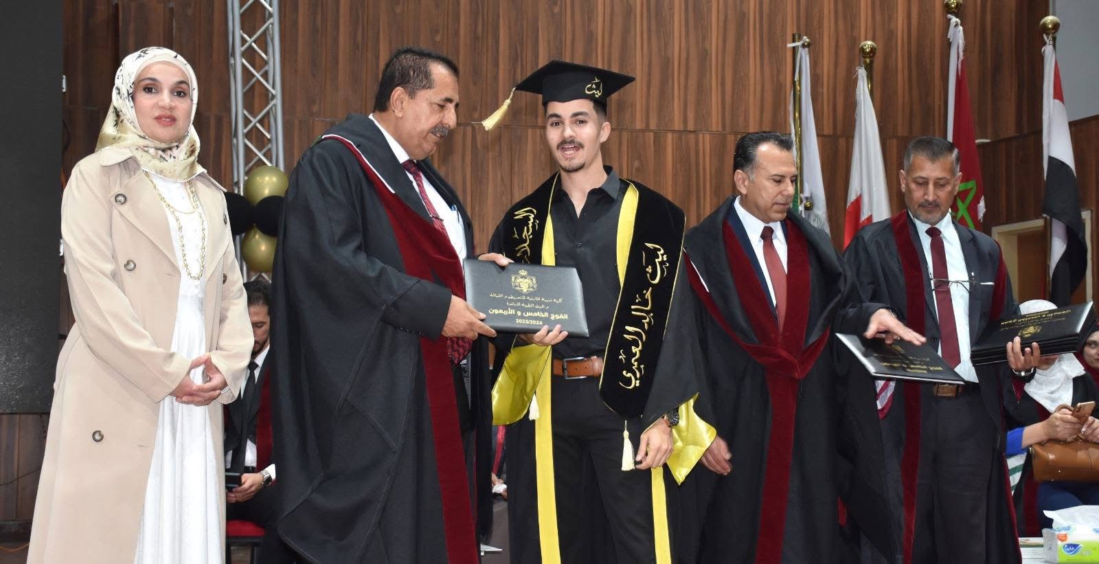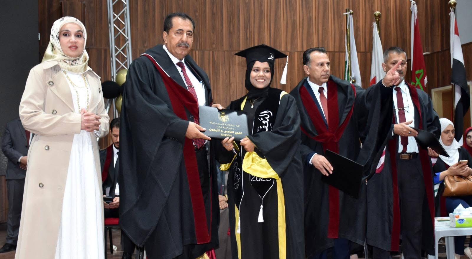 في مشهدٍ مهيبٍ يفيض فخرًا واعتزازًا، وبرعاية رئيس هيئة مديري جامعة جدارا والمدير العام عطوفة الدكتور شكري المراشدة، احتفت جامعة جدارا بتخريج الفوج الخامس والاربعون من طلبة كلية نسيبة المازنية للتمريض والقبالة، في حفلٍ بهيجٍ أقيم داخل الصالة الرياضية "الأرينا" في الحرم الجامعي، وسط أجواءٍ عامرة بالفرح والإنجاز.