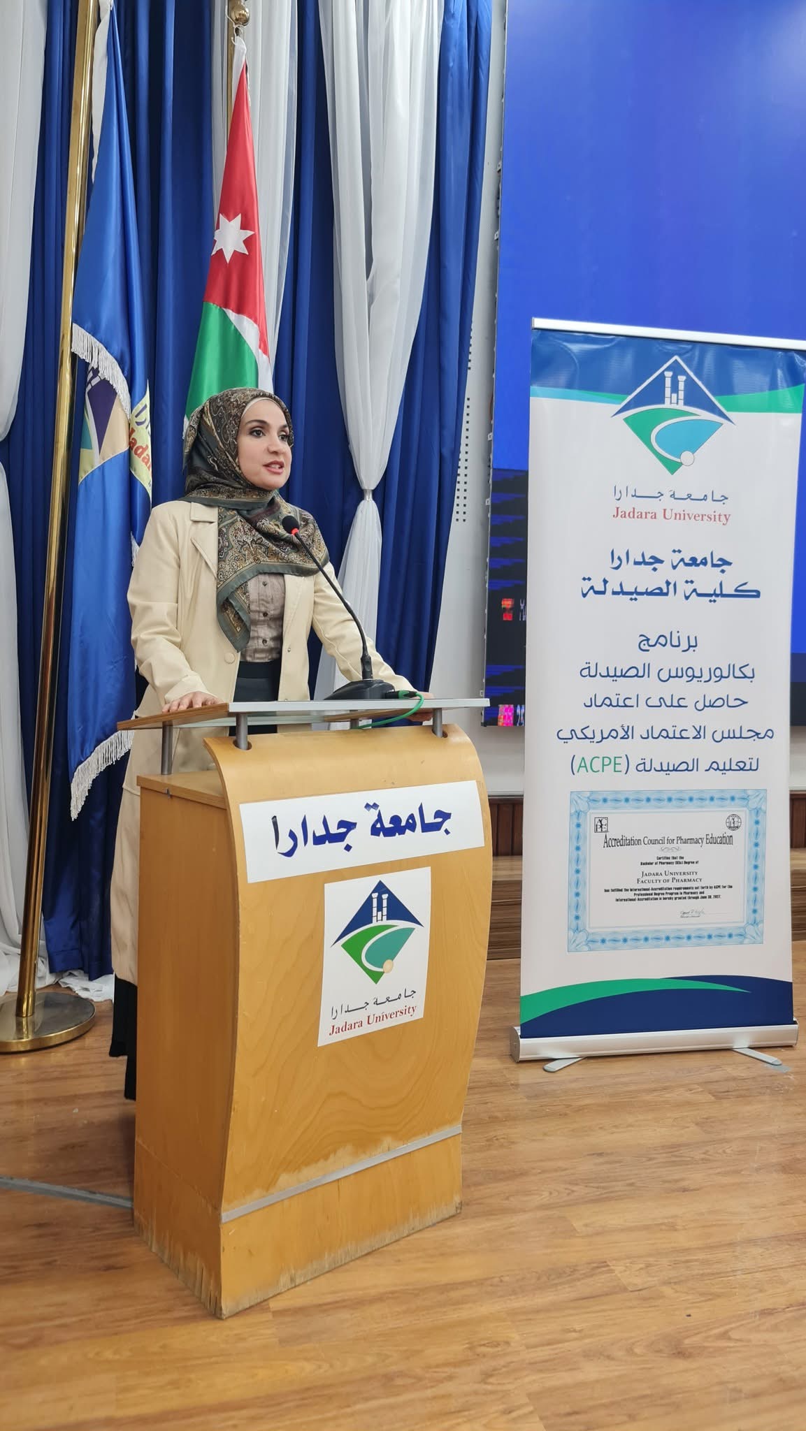 بدورها، أعربت الأستاذة الدكتورة إيمان البشيتي عن فخرها بطلبة كلية الصيدلة، مهنئةً إياهم ببداية الفصل الدراسي الأول وبانضمام الطلبة الجدد إلى أسرة الجامعة، مشيرةً إلى أن التخصصات الصيدلانية في جامعة جدارا معتمدة من هيئة الاعتماد الأمريكية (ACPE)، وهو ما يعكس جودة البرامج الأكاديمية وتوافقها مع المعايير العالمية.